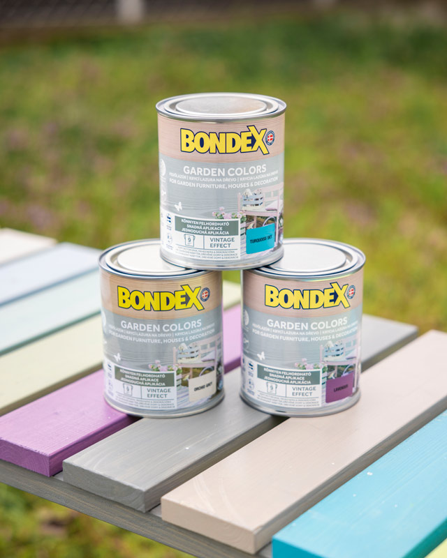 Chcete, aby vaša záhrada bola rajom pokoja a harmónie? Potom by ste nemali zabúdať na štýlový záhradný nábytok a dekorácie. A nemusíte ani kupovať predražené dizajnové výrobky. Dokonalý záhradný nábytok a dekorácie si vyrobíte hravo sami zo starších kusov. Stačí k tomu Bondex Garden Colors. Táto dekoratívna krycia lazúra je vhodná na drevo, kov, ako aj na betónové a tehlové povrchy. Pustite sa do natierania stoličiek, stolov, truhiel, kvetináčov, kanvíc alebo dokonca starého šijacieho stroja.