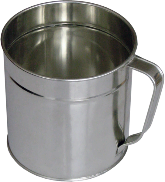 Pocínovaný plechový hrnček na rozmiešavanie, riedenie a dávkovanie farby.