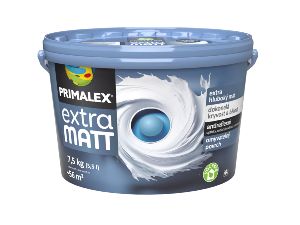 Primalex EXTRA MATT je vysoko kvalitný snehobiely, hlboko matný interiérový náter, ktorý vďaka technológii ANTI-REFLEX a vysokej krycej schopnosti opticky potláča odlesky a tým zakrýva nedokonalosti podkladu.