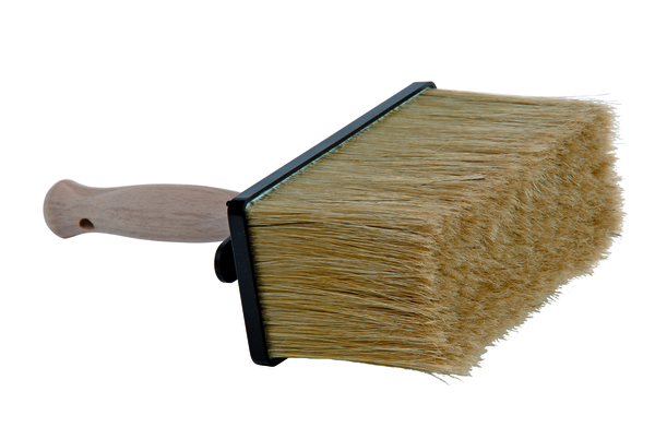 Plastové teleso a drevené alebo plastové držadlo, zmes prírodných a syntetických štetín.