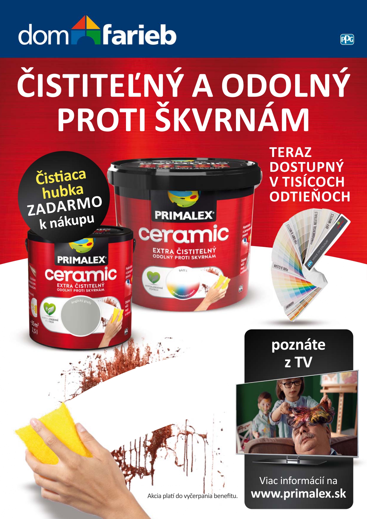 Nakúpte u nás akékoľvek balenie náteru Primalex Ceramic a my vám k nákupu pribalíme aj čistiacu hubku zadarmo. Akcia platí ako na kamenných predajniach, tak aj online.